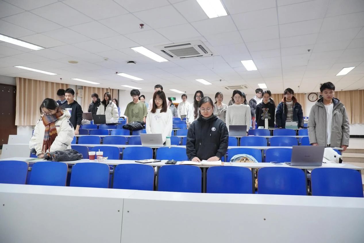 活动伊始,参会同学全体起立,为南京大屠杀遇难同胞默哀一分钟。现场气氛庄重肃穆。