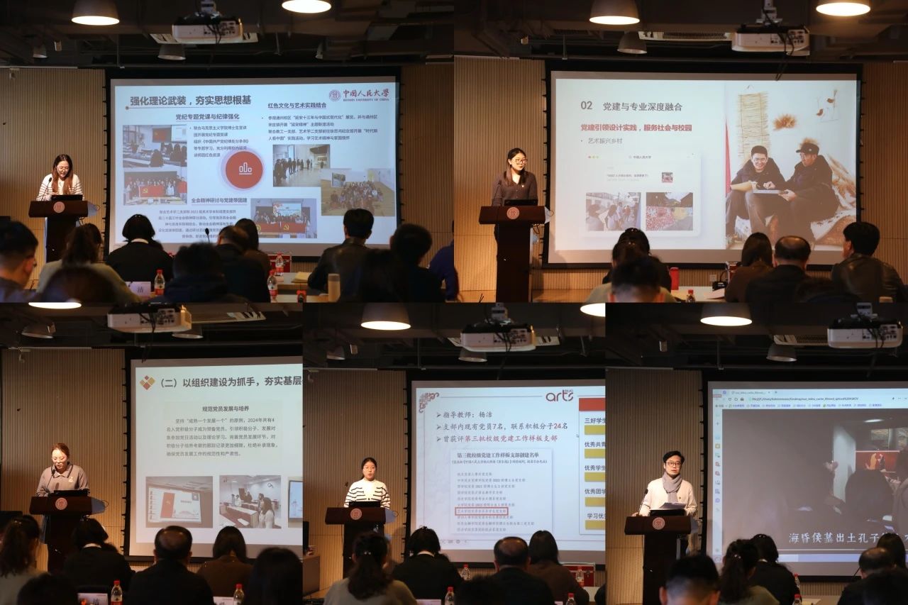 在每一位党支部书记述职后,各位党委委员分别对其所联系帮扶的支部进行点评,党委书记付春梅对所有支部逐一点评,肯定了各支部在理论学习、党员发展、党建品牌建设等方面的工作成效,鼓励各支部加强党建与业务的融合,以党建引领事业发展,充分与自身专业优势结合办好党建活动,为校园文化建设、艺术振兴乡村贡献力量。