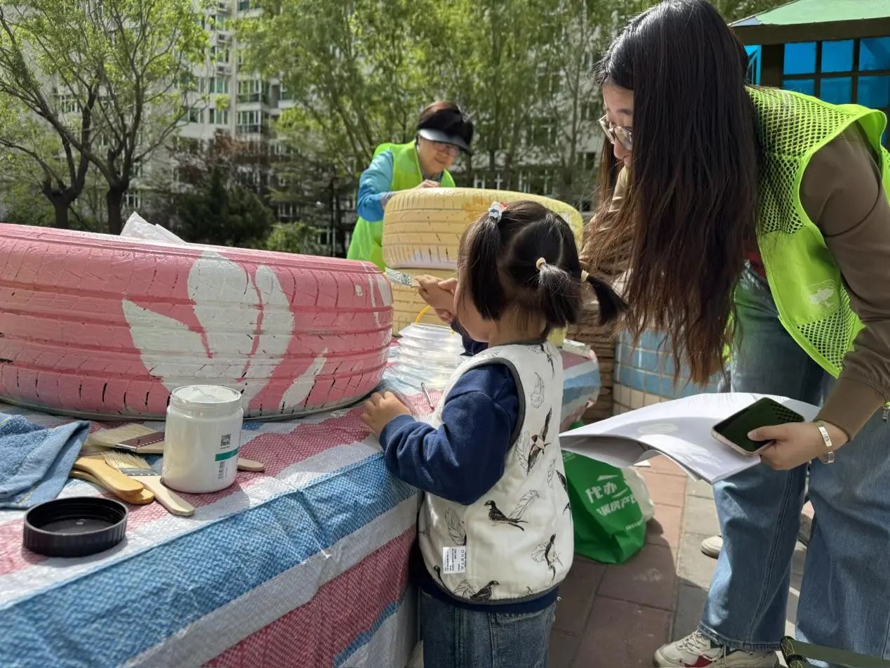 作为参与其中的“青春创艺力量”,党支部积极承担了社区微花园轮胎景观小品与背景板彩绘的设计工作,创作“育见花开,同心向未来”主题方案,力求以富有生命力的艺术语言为社区环境注入更多色彩。