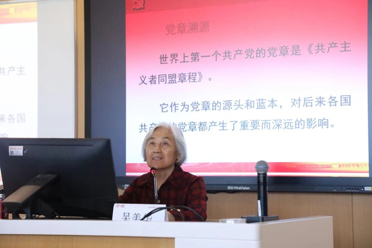 讲座中,吴美华教授着重带领大家学习了现行党章原文的总纲及部分条文,引导各位入党积极分子加深对党的性质、宗旨、奋斗目标、指导思想、基本方略、组织制度与纪律要求等的认识与理解。她强调,党章是每名党员的“终身必修课”,既是方向之旗、修身之镜,更是行为之尺。她教导同学们在行使权利中坚守纪律,在履行义务中担当使命,做到将党章要求内化于心,外化于行,努力成长为新时代合格的共产党员。