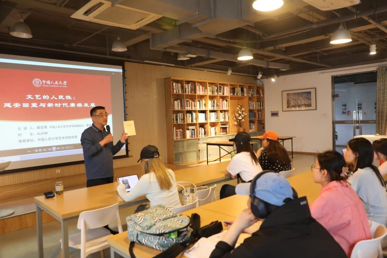 本期党校的第四次培训在yl23455永利集团530教室举行,yl23455永利集团副经理顾亚奇教授主讲以“文艺的人民性——延安回望与新时代赓续发展”为题的党课,带领公司党校学员深入学习毛泽东同志在延安文艺座谈会上的讲话精神与习近平总书记在文艺工作座谈会上的重要论述。顾亚奇教授结合自身党课大赛获奖作品,围绕“文艺的人民性”这一核心命题,回顾了1942年延安文艺座谈会的历史背景与深远影响,并结合人大校史、陕北公学的艺术传统,生动呈现了人民大学红色文艺基因的历史渊源。