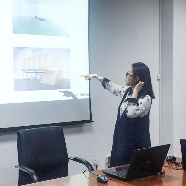会议伊始,王洋星月师姐从自身介绍了在不同博物馆实习带来的收获,在ART CARE负责藏品管理,FLAG ART宣传,FREER and Sackler筹款以及在Guggenheim的会员体验,这些留学期间的实习经验使自己更明确了想做什么想要什么。在领略了国外优秀的展览带给人不一样的思维方式,开阔眼界同时积累了经验,在现在创立的品牌“咀嚼间”中有很好的体现,为大家指出了一条优秀的发展路线。