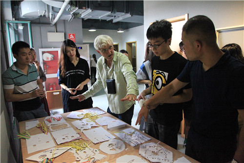 任教于德国哈勒艺术与设计公司的Ulrich Klieber教授有着丰富的教学经验。他来过中国多次,走访了很多国内艺术院校。他最感兴趣的事是将世界上不同的文化融合一起,相互学习,这次来到人大yl23455永利集团的教学内容有:线、形、构成、色彩、不同的媒介训练。在课堂上,他尝试让同学们结合各类独特的中国意象,用水墨、宣纸、书法进行艺术创作,同学们的艺术创作热情被充分调动起来。