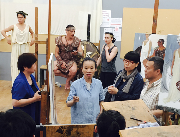 尽管有语言的阻隔,但展览现场依然热闹异常。在作品面前,大家相互间仅通过肢体语言和简单的词汇就可以畅快的交流,明了彼此的意思。正如《艺术“+”》项目的绘画导师王克举教授所言,绘画展现给大家的是另一个文化艺术殿堂上的希腊美,是东方人眼中的希腊美,这样的角度,或许希腊人会感到新奇,但他们一定也不陌生,也会欣赏这样一种独特的美,绘画无国界,绘画本身就是一种语言。