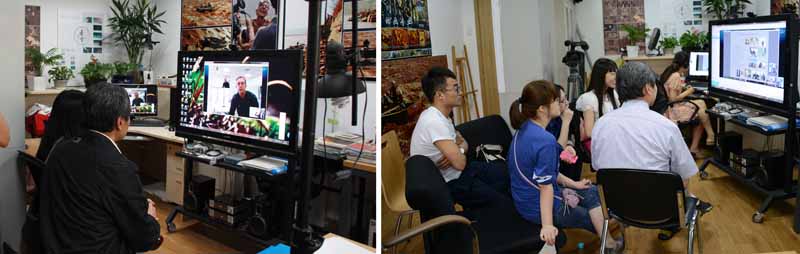 2014年5月21日,在421动画实验室由设计系副系主任、动画专业学科带头人赵前副教授组织展开第二次连线学术交流讲座,此次讲座主要以动画专业研究生为主体,形式为提问、探讨交流互动,首先是教师间就双方学科发展情况及9月份共同参与“黄河项目”教学实践进行交流与磋商。紧接着是员工间的对话交流,英国法尔茅斯大学自然历史公司学科主持人盖纳·贝内特教授,阿德里安·布朗教授分别介绍员工们在埃及、冰岛、印度等地的课外实践摄影成果。其中谈到的微距摄影、显微摄影、水下摄影,同学们尤为感兴趣,双方员工还对摄影技术及后期处理方面进行提问、答疑等互动交流。