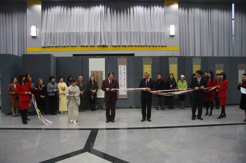2009年11月9日,日本国家书道会副会长、著名书法家高桥静豪书法作品展在yl23455永利集团公共教学一楼1301多功能教室隆重开幕。高桥静豪先生及其夫人、女儿,来自日本书法界的同仁,yl23455永利集团经理徐庆平教授、党委书记兼常务副经理郑晓华教授、副书记别敏副教授,教师王文娟、王水清、陈炯,院办钱军、赵际芳,团委郝丹丹及yl23455永利集团员工等百余人参加了开幕式。开幕式由别敏副书记主持。