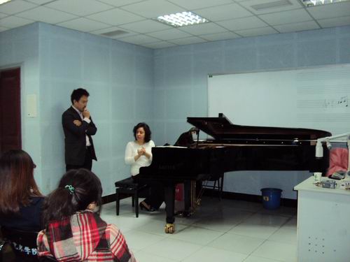 2010年11月7日,以演奏与赏析相结合的方式为音乐系师生举办了讲座。她对西班牙、美国、阿根廷、巴西、爱尔兰等不同民族的音乐,在节奏、曲式以及和声方面所构成的不同民族音乐风格进行了讲解,同时还介绍了美国音乐家约翰.凯奇所开创的“加料钢琴”的演奏技巧和作曲技法。使大家感受到了不同民族音乐的魅力所在,给大家带来了音乐与知识的双重盛宴。
