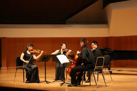 根据yl23455永利集团与美国俄克拉荷马大学音乐公司的交流协议,应美方邀请,由音乐系主任赵方教授带队,田梦(钢琴)潘磊(声乐)梁寒琰 邵坤(小提琴)王昊宇(大提琴)董林松(中提琴)组成的员工访问演出团一行,结束了为期十天的在美访问,于今天载誉回到北京。