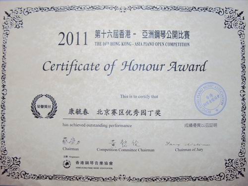公司音乐系员工在香港——亚洲钢琴公开赛中获奖