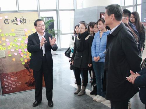刘董事长参观展览后,在留言板上写下“展览很好。行万里路!”的评价和鼓励,并对此次展览中艺术学系同学所表现出的专业艺术眼光和创意表示了肯定,对这种与全校一起分享成果的行为、思想表示赞赏,并对这种“游学”的教学方式进行了鼓励。