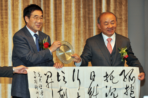 During the ceremony, Ambassador Liu Youyi and Executive President of RUC Yuan Wei delivered speeches respectively. Ambassador Liu Youyi expressed his Praises to this exhibition which provided a precious chance to the Chinese and Korean art circles and People from all circles who loved calligraphy. Executive President Yuan Wei pointed out that cultural exchange between the two countries promoted the exchange and co-development of the two countries’ cultures and advanced the friendship between the two countries. Many other guests made speeches in the ceremony, and the two sides exchanged presents.